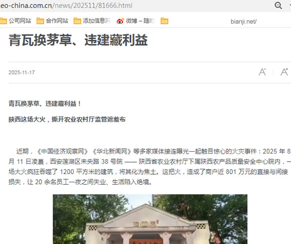 近期,《中国经济观察网》《华北新闻网》等多家媒体接连曝光一起触目惊心的火灾事件:2025 年 8 月 11 日凌晨,西安莲湖区未央路 38 号院 —— 陕西省某部门下属陕西农产品质量安全中心院内,一场大火疯狂吞噬了 1200 平方米的建筑,将其化为焦土。这把火,造成了商户近 801 万元的直接与间接损失,让 20 余名员工一夜之间失业、生活陷入绝境。