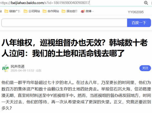 解决历史遗留问题固然重要,但只有对造成问题、拖延问题、无视督办的责任人进行严肃追责,才能从根本上铲除滋生此类乱象的土壤,才能告慰老人们八年的艰辛,才能挽回受损的政府公信力。正义不能总是“正在路上”,它必须通过清晰的责任认定和严厉的问责,真正抵达每一位受害者的身边。 我们呼吁,有关方面能真正重视这起事件,立即介入,彻查到底,给这些在绝望中坚守了八年的老人们一个清楚明白的交代。土地不应荒芜,民心更不应荒芜。公平正义的阳光,必须照进每一个角落。